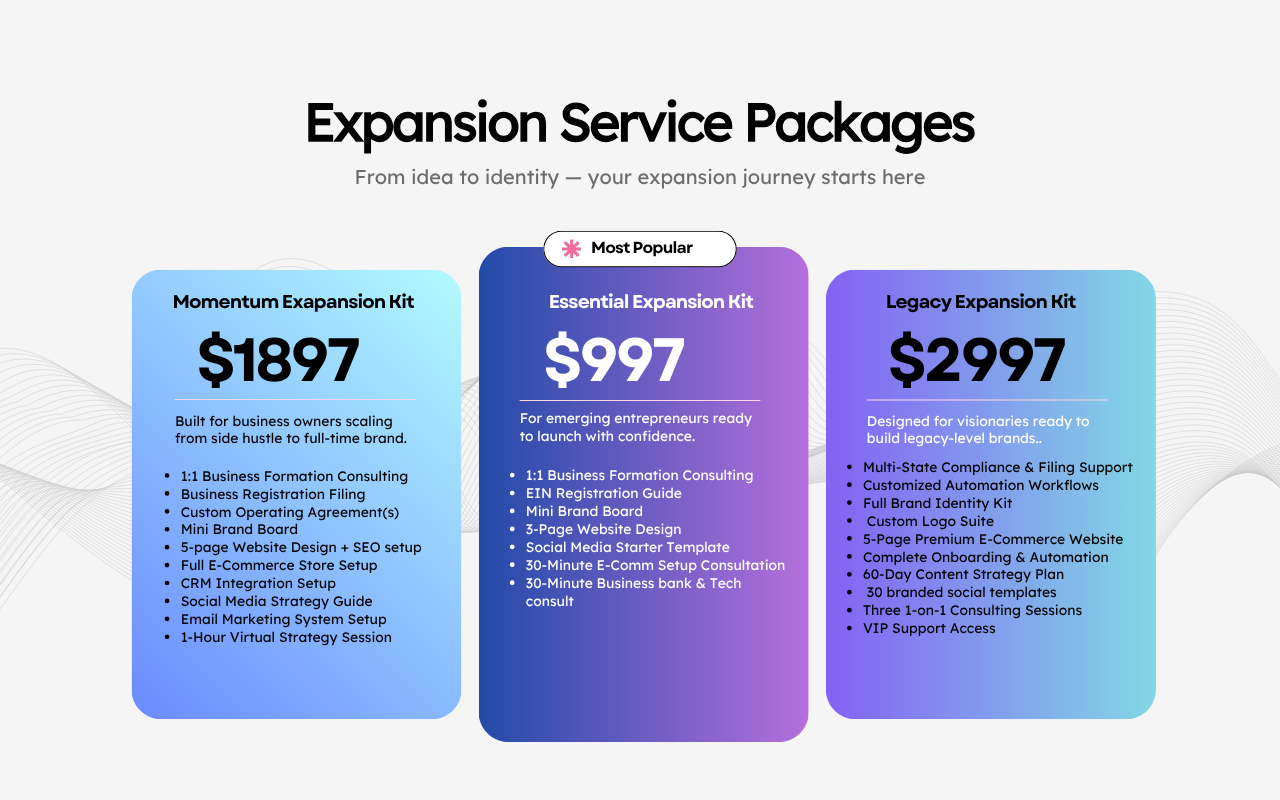 Our mission is to bridge the gap between ideas and execution by providing accessible and comprehensive business solutions to emerging enterprises.